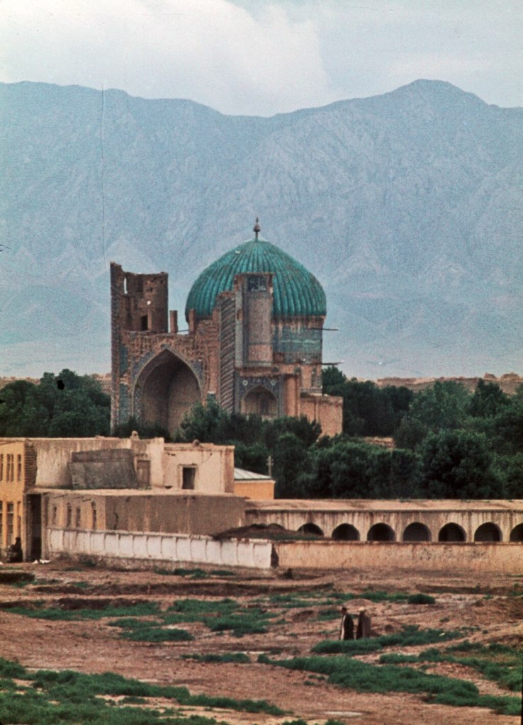 In the central square (a garden) there was an old half-ruined mosque [see below, photos from 2001], with the same old turquoise tiling. We had one of the renowned Mazar-e-Sharif ice creams on our return from Balkh and spent most of the rest of the day swooning from heat (and laziness) in the hotel – as Mazar isn’t particularly exciting we didn’t feel we were missing anything.