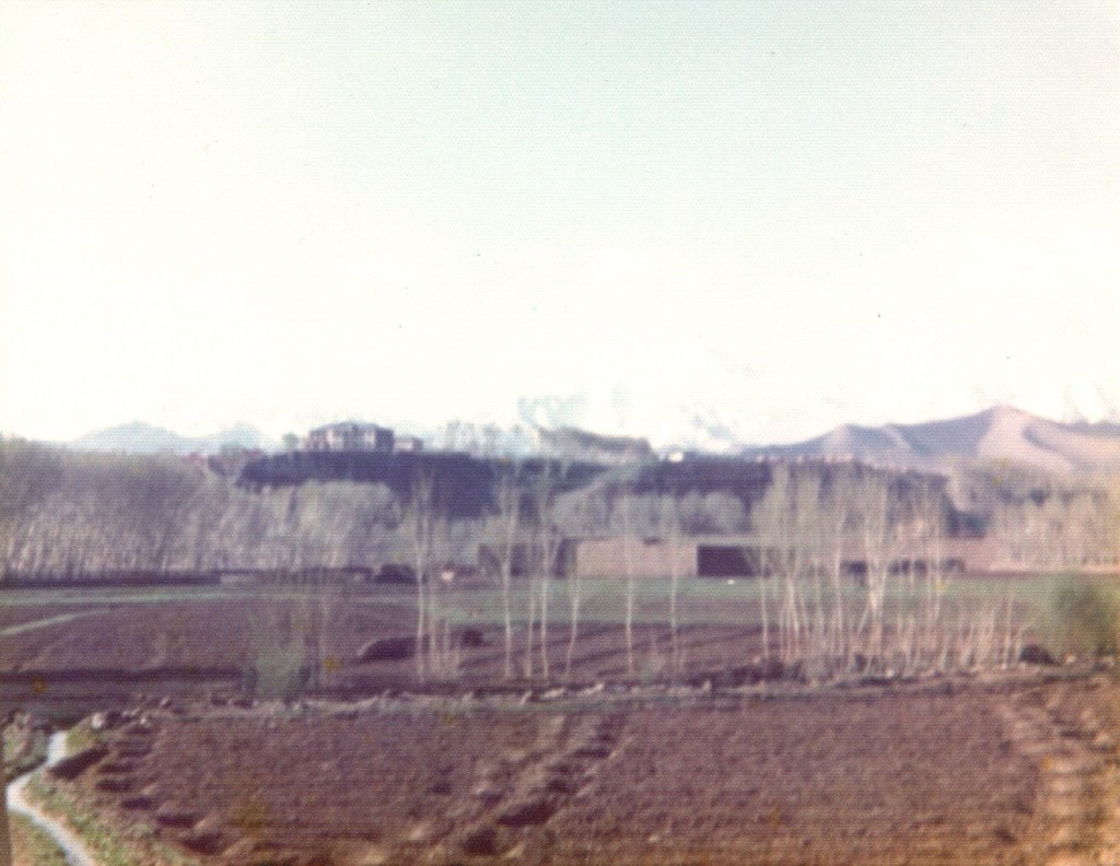 Woken by the sound of voices in the chaikhana below so we got up in order to see if any transport should arrive. We had hard-boiled eggs and bread and tea for breakfast and then our friend took us for a walk in the country. The town is called Doab (two waters) because of the confluence of two rivers, one whiteish from Bamiyan, and one red, full of minerals from the red hills. He showed us an old fortification on the top of the hill, two ziggurats (tombs of Saints to which people make pilgrimages and leave scarves tied to long poles). On one of them we saw some people cooking and were told that the food would be given to the poor, and corn and rice mills both operated by water. We returned to the village and soon after a lorry arrived bound for Bamiyan.