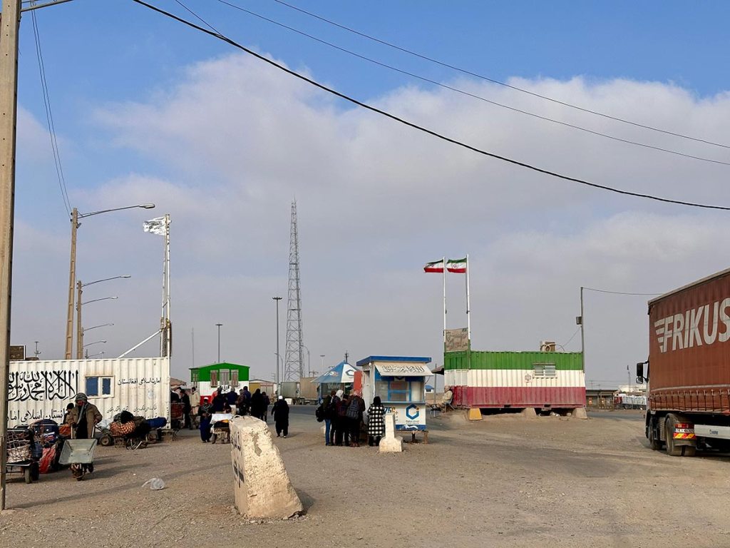 Got up at 5 am, went in a taxi with an Australian couple to the bus station. Couldn’t get on until 8, so we went to a tea shop and had a marvellous time talking to Afghanis all going home. Then we stopped by a bakery and bought delicious hot crisp bread (J took a cine of them doing it). The bus was very hot. We passed through several flooded villages where houses have been completely washed away. We got to the border, very unorganised, and spent a long time on the Iranian side, before climbing into the most dilapidated Mercedes minibus I’ve ever seen, at least 20 years old, could see the ground underneath, windows boarded up, radiator open! It chugged to the Afghan side – even more chaotic and spent at least four hours there. Some poor Indians had to go back all the way to Mashad – no visas.