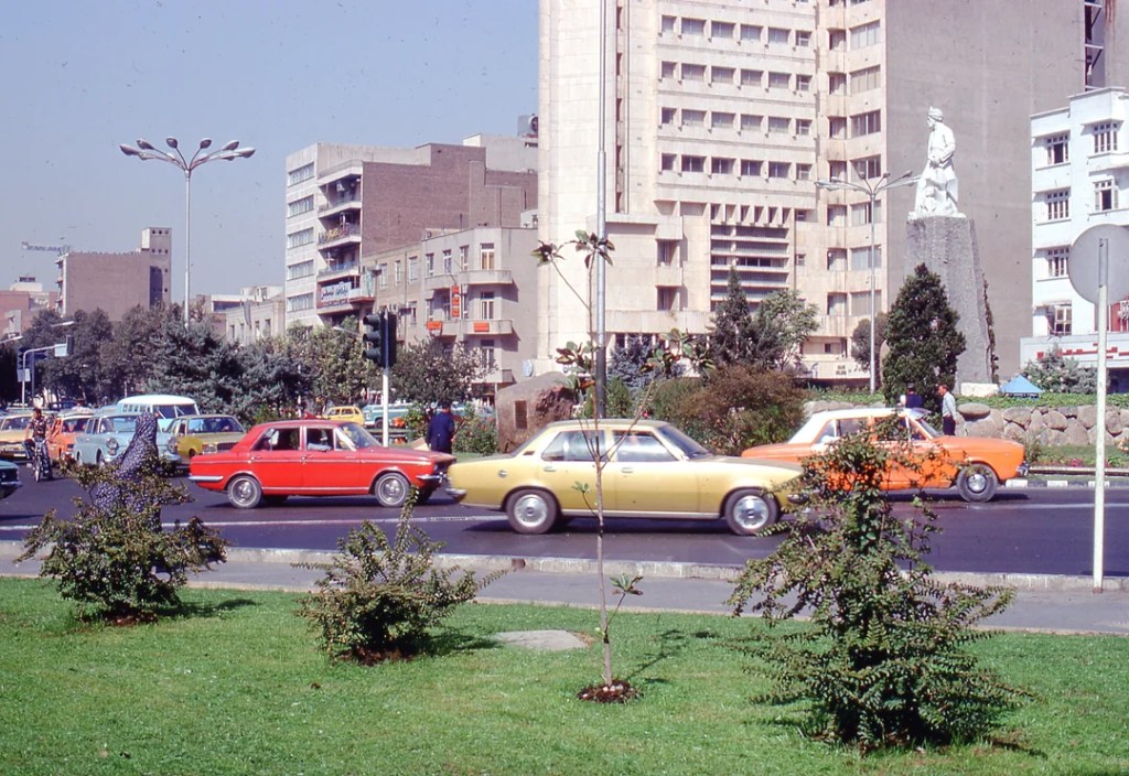 We arrived in Tehran about 8 am and, together with Linda, set off to find the youth hostel – found a bus eventually but after a long walk to get there we found it was full. Exhausted, we took a taxi to Amir Kabir Street, found the renowned Amir Kabir hotel, also full, and several dispirited people saying everything was full up. So Lynda and J set off on a search – Lynda found a single bed in a four-room and we ended up sleeping on very hard benches in the Amir Kabir – didn’t sleep at all well as it was so hard. My cold by this time had got very much worse, and I felt very sorry for myself.